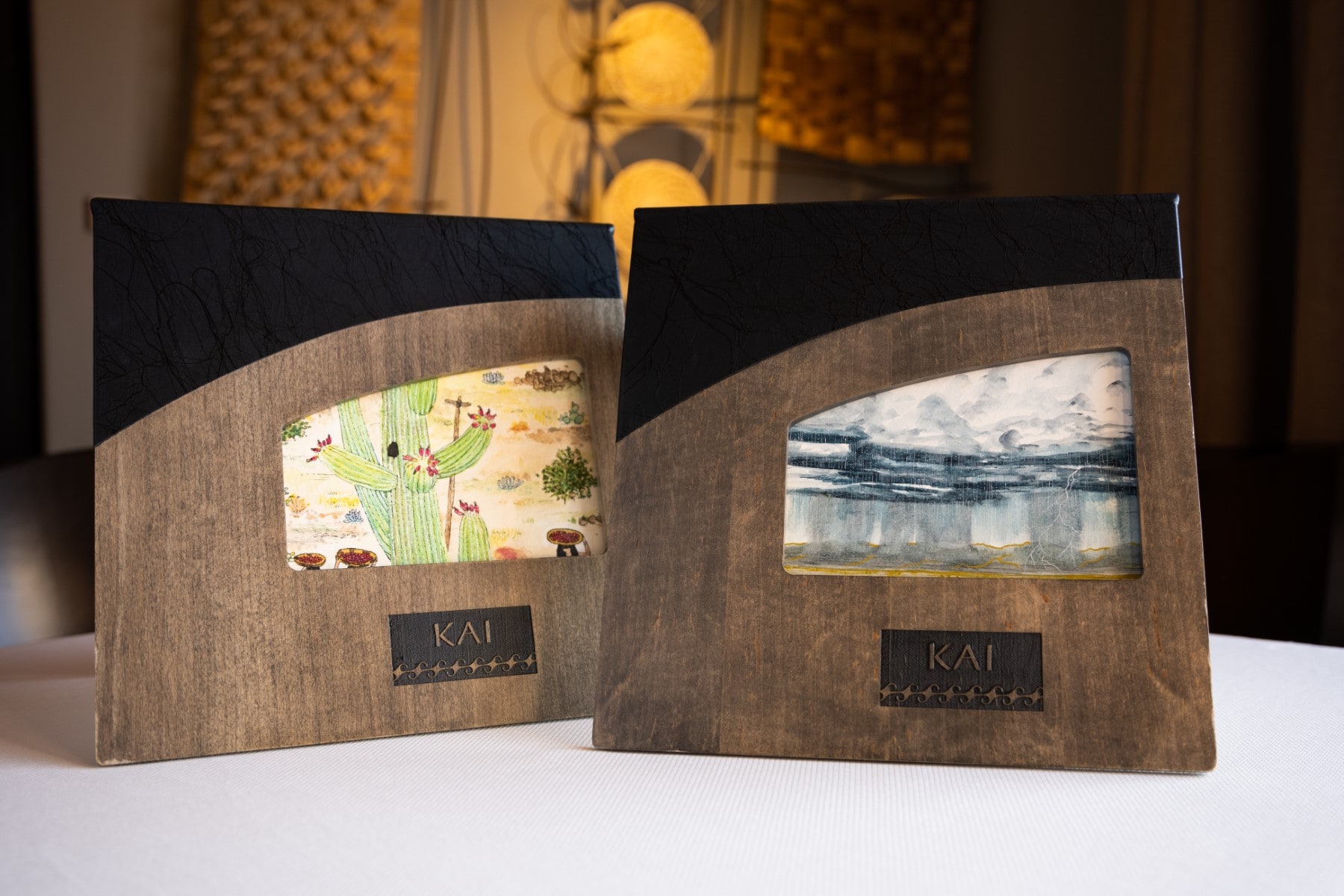 KAI Restaurant blends warm wood accents, contemporary finishes, and local artwork and pottery, defining hospitality against the Komatke Mountains at restaurants in Phoenix Arizona.
